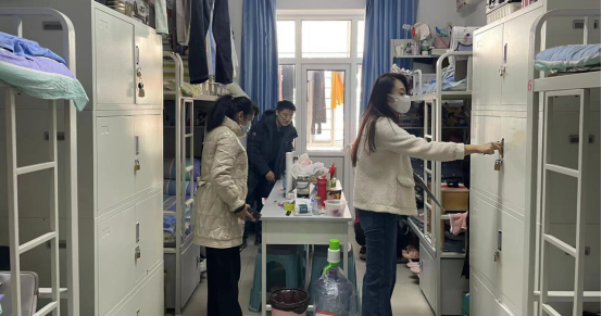 本次检查内容包括寝室卫生状况、用电安全、学生的生活状态等。在检查过程中,学生处教师及各学院书记、辅导员与学生们亲切交谈,将严格管理和教育引导相结合,叮嘱学生关注春季消防安全和传染病防范,并鼓励同学们以积极向上的精神风貌和安全整洁的寝室环境喜迎70周年校庆。