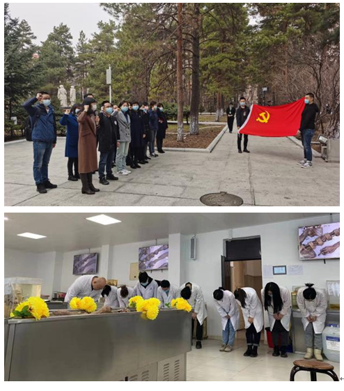 4月2日,基础医学院组织开展“传承薪火祭英烈”宣传教育活动。中医第二党支部、西医第二党支部党员教师赴哈尔滨烈士陵园参观学习。同志们在卢冬生烈士陵墓前聆听英雄事迹,并对烈士陵墓进行清扫,鞠躬默哀以示怀念。教师党员还在烈士墓前重温了入党誓词。当天,西医第一党支部举行了“大爱无言,感恩良师”活动,全体党员怀着无比崇敬的心情向“大体老师”默哀三分钟,并敬献鲜花。