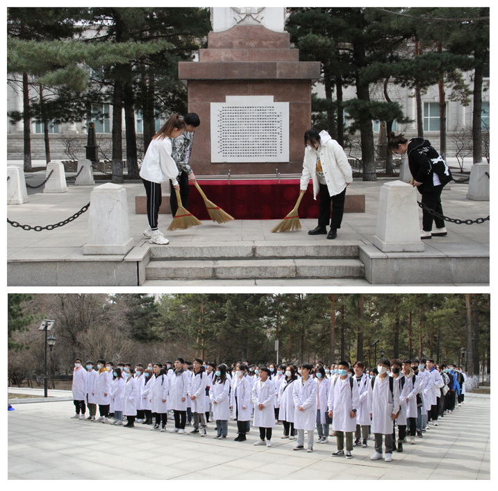 3月31日,第一临床医学院组织学生来到哈尔滨烈士陵园开展祭扫活动,同学们满怀着崇敬与哀思,为英雄烈士敬献花篮。汉族和少数民族学生代表分别发言,道出各民族同学缅怀先烈、牢记历史、承袭薪火的心声。活动中,学生代表还为烈士墓碑进行了清扫。