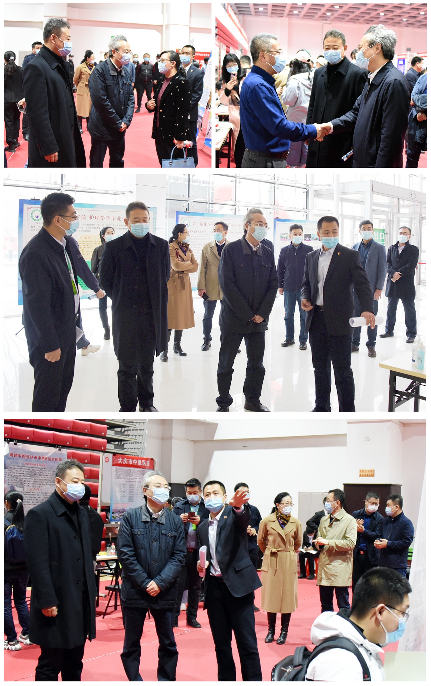 校党委书记赵炜明、校长郭宏伟、校党委副书记姚凤祯、副校长徐峰,校党委常委、宣传部部长兼统战部部长李和伟来到供需见面洽谈会现场,与用人单位负责人和毕业生交流,了解2021年毕业生就业市场情况。各学院、职能部门相关负责人,以及辅导员老师们也来到现场,为毕业生和用人单位提供相应帮助和服务。