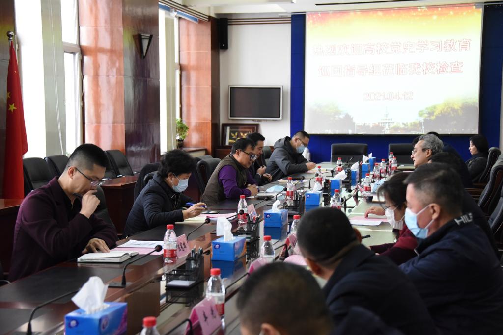 4月13日上午,由哈尔滨商业大学原党委副书记李秉治任组长、省教育厅离退休干部工作处处长车成全为副组长的省高校党史学习教育巡回指导组一行来校检查指导。学校党委书记赵炜明作工作汇报。校党委副书记陈亚平,校党委常委、宣传部部长兼统战部部长李和伟,校党委常委、组织部部长陈冬梅参加工作汇报会议。