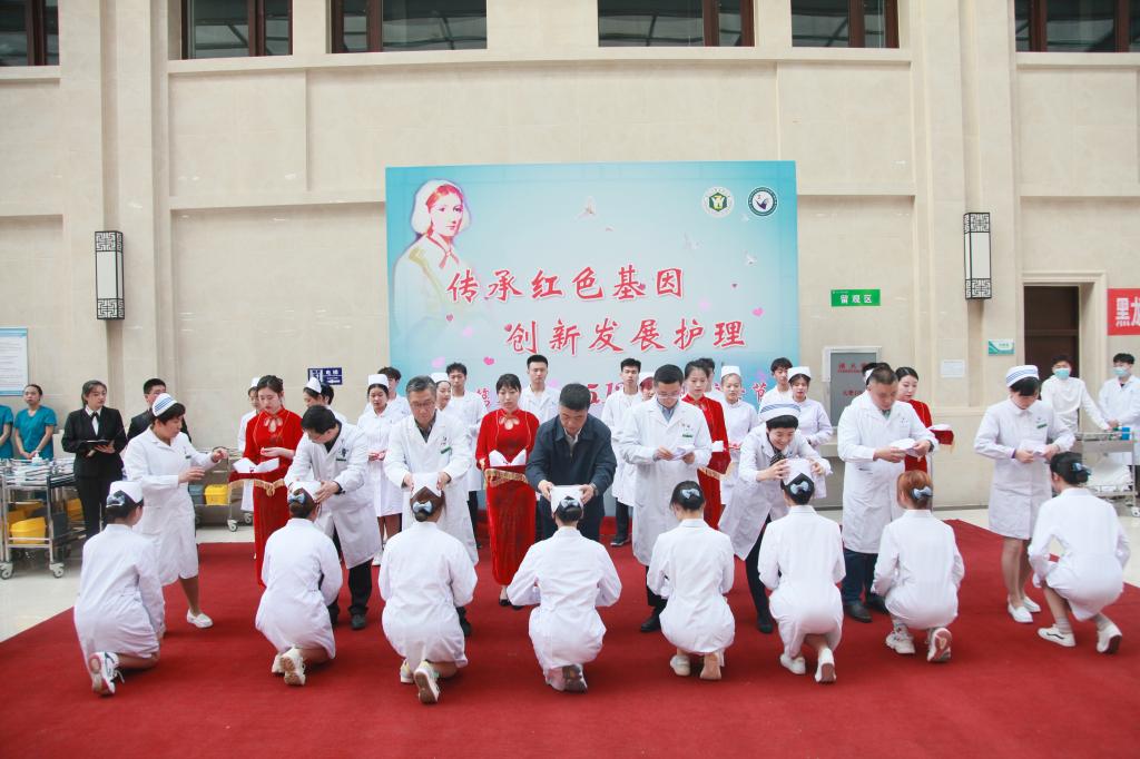 在授帽仪式上,与会领导为64名学生代表戴上圣洁的燕帽,点燃象征南丁格尔手中那盏明灯的红烛,并庄严宣誓。