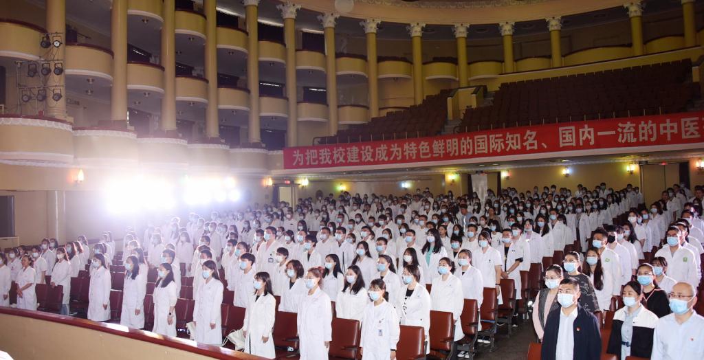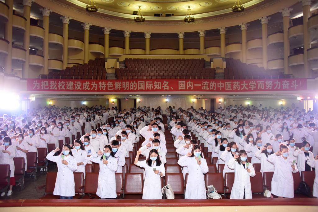 “我志愿献身祖国医药学事业,决心将救死扶伤、恪守良好的医德医风和认真执著的追求作为行为准则,把全力除人类之病痛、助健康之完美、维护医术的圣洁和荣誉作为实践的归宿。用无私的奉献精神捍卫母校的尊严和声誉,用卓著的成就回报师长的教诲和抚育……”在学生工作部(处)副部(处)长赵法政同志的带领下,全体毕业生庄严地齐声诵读《vwin德赢ac米兰官网学生毕业誓言》。