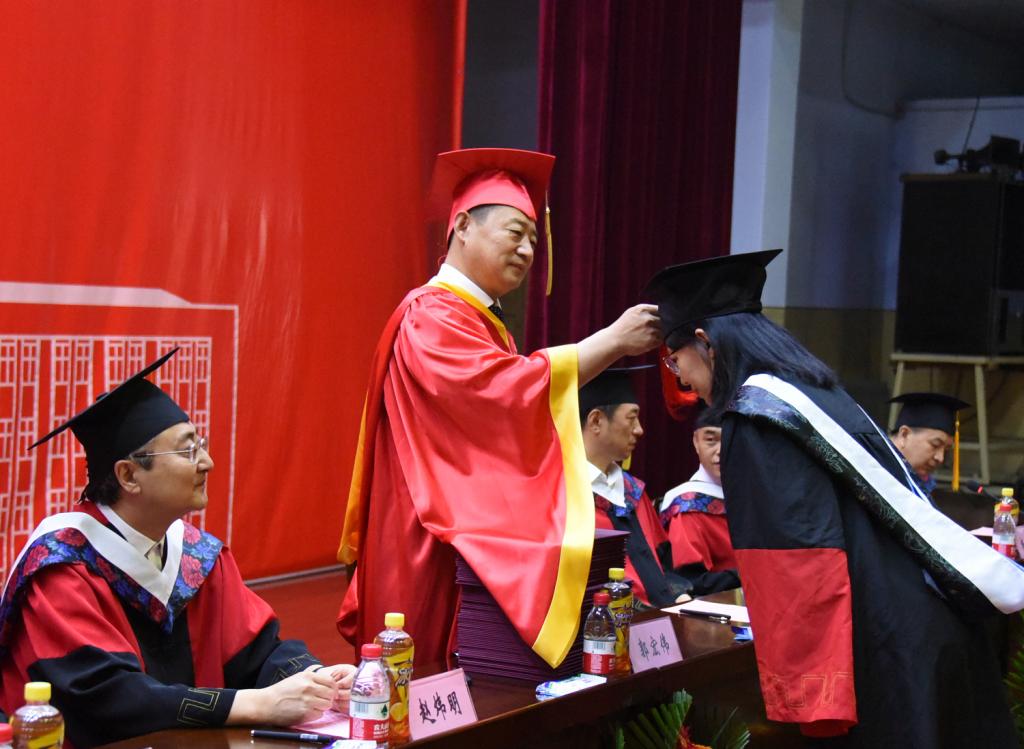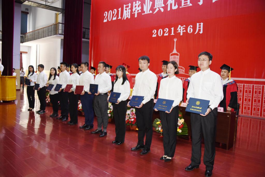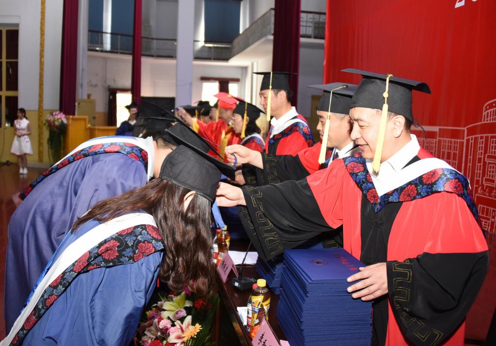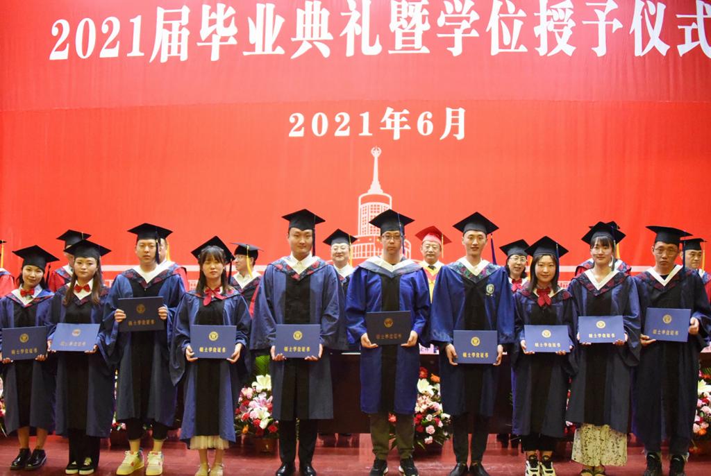 校学位评定委员会委员、学校领导班子成员向获得硕士学位的毕业生授予学位,并颁发硕士学位证书。