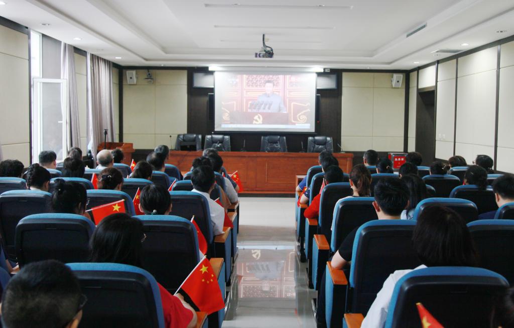 校领导、机关副处级以上干部在主楼求真讲堂同步收看
