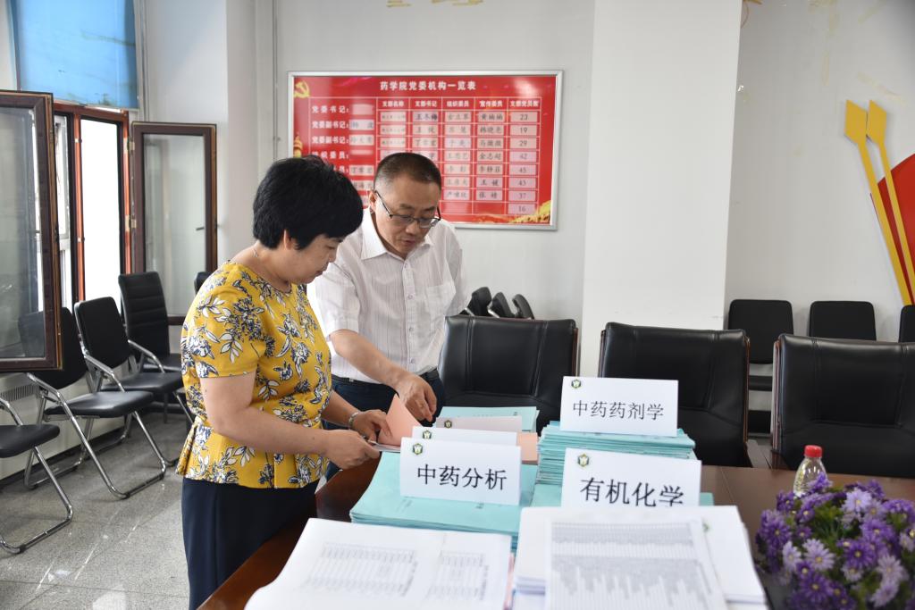 初访专家查阅中药学专业本科生试卷、论文、实验报告。