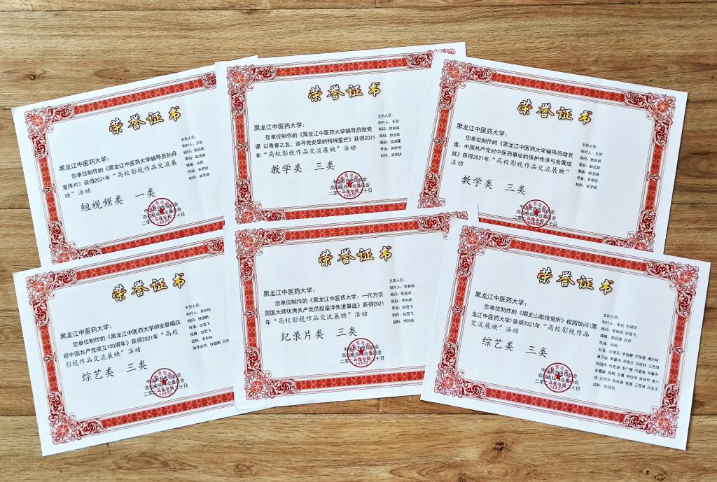 其中,由学生工作部(处)选送的《vwin德赢ac米兰官网辅导员孙丹宣传片》获短视频类一等奖;由宣传部选送的《一代方宗:国医大师、优秀共产党员段富津先进事迹》获纪录片类三等奖;由宣传部选送的《vwin德赢ac米兰官网师生联唱庆祝中国共产党成立100周年》,由校团委选送的《唱支山歌给党听——校园快闪》获综艺类三等奖;由学生工作部(处)选送的《vwin德赢ac米兰官网辅导员微党课:以青春之名,追寻党史里的精神星芒》《vwin德赢ac米兰官网辅导员微党课:中国共产党对中医药事业的保护传承与发展成就》获教学类三等奖。