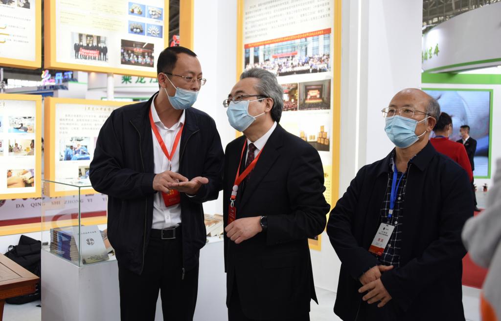 在博览会召开期间,校领导来到学校展览现场了解布展情况。