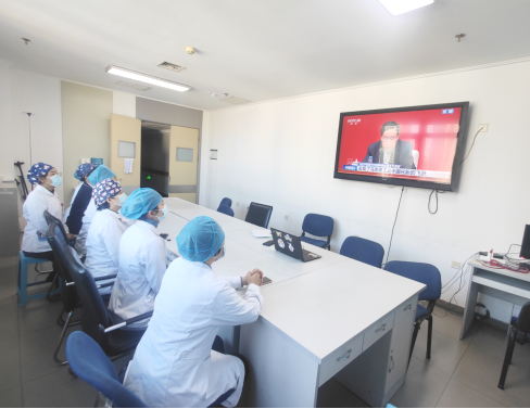 临床医护人员收看新闻发布会直播