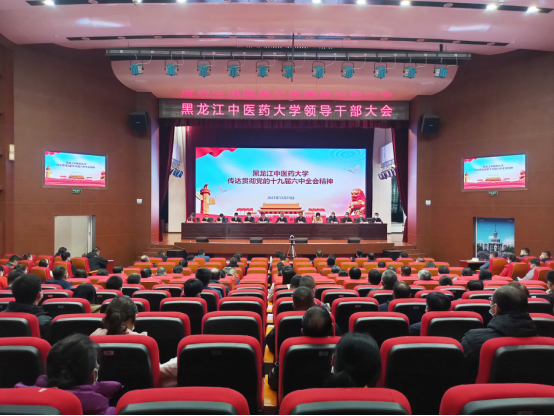 为把党的十九届六中全会精神迅速传达到全校各级领导干部,传达到各单位各部门,切实把思想和行动统一到党中央的决策部署上来、统一到习近平总书记重要讲话精神上来、统一到全会的各项部署和要求上来,11月15日下午,学校召开领导干部大会,传达贯彻党的十九届六中全会精神。校党委书记赵炜明讲话,校长、校党委副书记郭宏伟主持会议,校党委副书记尹占军传达党的十九届六中全会精神。会议以线上线下相结合的形式召开,校本部处级以上领导干部、辅导员在学校综合楼主会场参加会议,各附属医院、佳木斯学院领导干部在分会场参加会议。