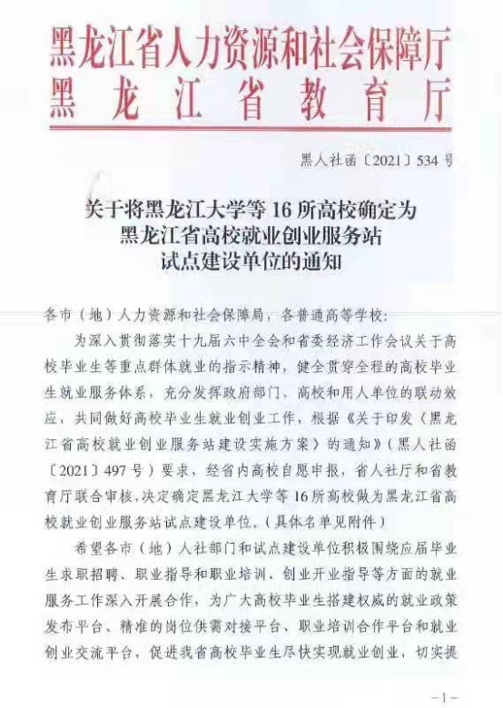 据悉,共有35所高校申报全省首批高校就业创业服务站试点建设单位。历经申报、人社厅和教育厅联合评审等环节,最终选定16所高校作为黑龙江省首批高校就业创业服务站试点建设单位。