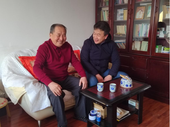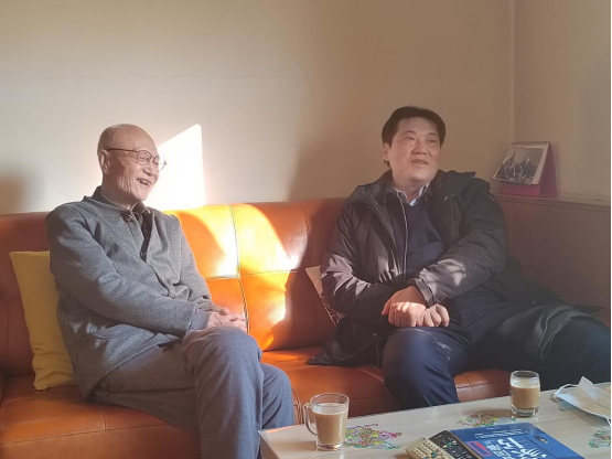 在离休干部刘屏源家中,赵炜明详细询问了老同志的身体和家庭生活情况,虚心听取他对学校工作的意见与建议。