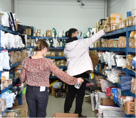 快递工作人员对快递外包装进行消杀