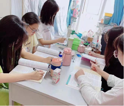 课下,室友们组成学习小组,一起温习功课,就所学知识进行讨论。