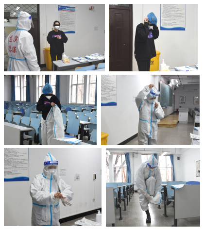 核酸阳性学生依次进行手部消杀、佩戴医用防护帽、穿戴防护服、佩戴防护面屏、佩戴手套、穿戴鞋套。