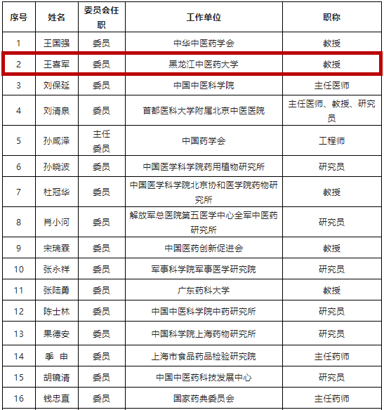中药管理战略决策专家咨询委员会委员名单
