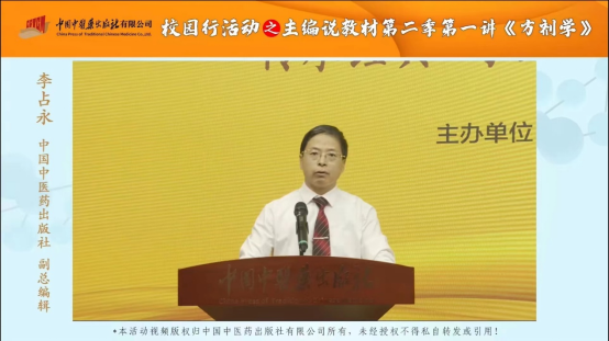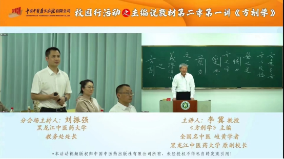 9月15日,由国家中医药管理局教材办公室、中国中医药出版社联合全国各高等中医药院校举办的校园行活动之主编说教材第二季正式启动。德赢作为第二季第一讲的联合主办单位,邀请全国名中医、岐黄学者、国家级教学名师、全国优秀教师、全国中医药行业高等教育“十四五”规划教材《方剂学》主编、德赢原副校长李冀教授以“李冀讲方剂”为主题为全国师生开讲。
