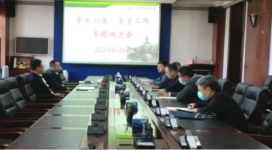 后勤管理处、国有资产管理处、武装保卫部等部门相关负责人分别围绕新建学生食堂、教研综合楼等重点基建项目及校园疫情防控工作推进情况、当前工作存在的困难与问题以及下一步工作思路等内容进行汇报。