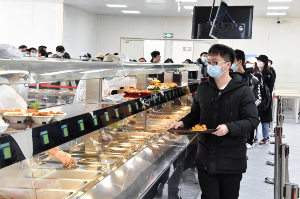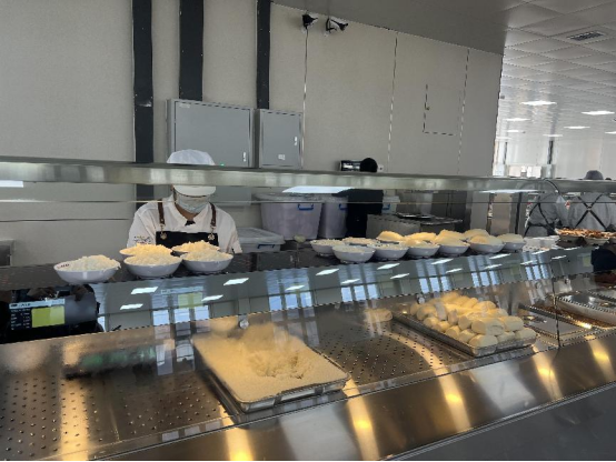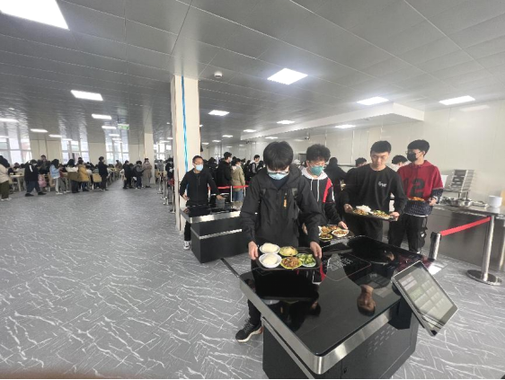 “智慧食堂”工程是膳食中心四餐厅的一个特色,它通过数据统计分析融合数字化终端设备协助食堂处理备菜、排队、取餐、结账一体化运行模式,主要优势体现在自动结算、不排队、秒收银、服务自动化,能够提升食堂整体配套水平。
