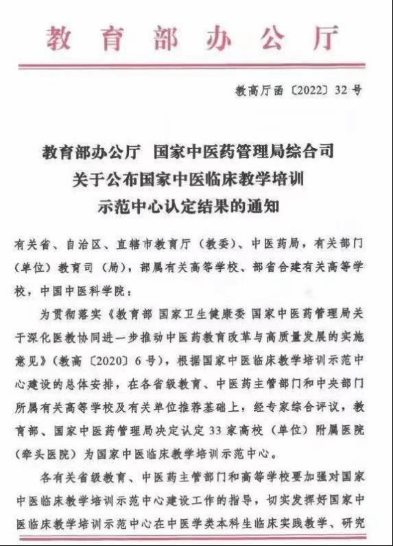 近日,经教育部、国家中医药管理局批准,vwin德赢ac米兰官网附属第一医院获批“国家中医临床教学培训示范中心”。