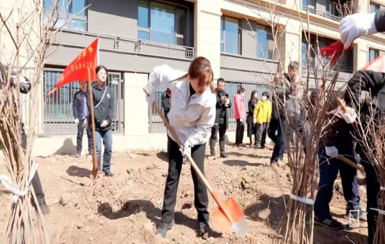 4月13日上午,农工党黑龙江中医大学总支在哈尔滨融创城联合开展义务植树活动。