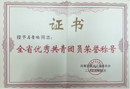 药学院2021级药学专业4班马晋楠同学荣获“全省优秀共青团员”称号
