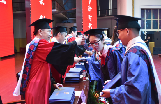 学校学位评定委员会委员、学校领导班子成员向获得硕士学位的毕业生授予学位,颁发硕士学位证书