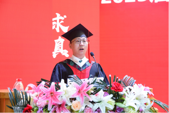 郭宏伟教授代表学校向圆满完成学业的博士、硕士毕业生们致以热烈的祝贺。临别在即,他向2023届研究生提出三点希望: