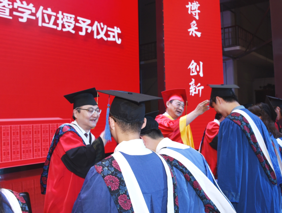 学校学位评定委员会委员、学校领导班子成员向毕业生代表颁发毕业证书