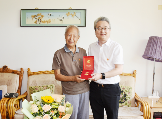 在党的第102个生日即将到来之际,6月30日上午,校党委书记赵炜明来到德赢退休老领导吴乃杰家中进行走访慰问,并代表学校党委为老同志颁发“光荣在党50年”纪念章。