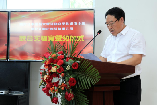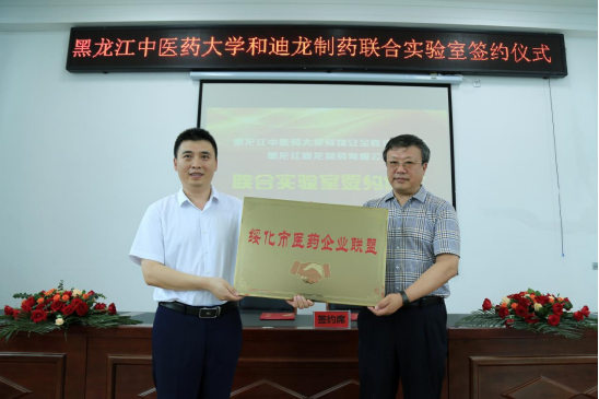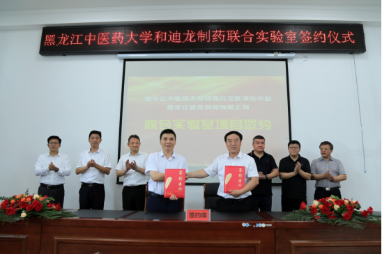 7月11日,校长郭宏伟、副校长王顺及药物安全性评价中心一行8人赴安达市,与黑龙江迪龙制药有限公司签署联合实验室协议。省药品监督管理局副局长王晓刚、黑龙江迪龙制药有限公司总经理王英新出席签约仪式。