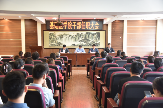 9月6日,学校分别在基础医学院、附属第二医院召开干部任职大会,任命胡晓阳同志为基础医学院院长、党总支副书记,朱路文同志为附属第二医院(第二临床医学院)、针灸推拿学院、康复医学院院长、党委副书记。