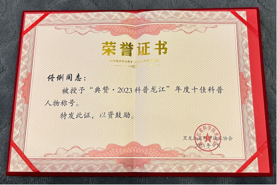 作为一名基层科普工作者,佟俐同志认真履职,精研业务,勇于创新,充分发挥中医药博物馆场馆场地优势和馆藏资源特色,紧紧围绕“弘扬中医药文化、普及中医药科学知识、发展中医药事业”的工作目标,针对公众和社会需求,组织开展中医药知识科普、中医药文化宣传、中小学研学实践等中医药特色科普活动,以群众喜闻乐见的形式把中华优秀传统文化推广开来、传承下去,为助推龙江公民科学素质提升做出积极贡献。