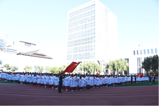 14时,开学典礼在庄严的国歌声中开幕。全体肃立,齐唱国歌。