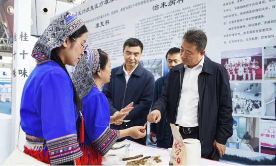 郭宏伟先后来到学校及各附属医院展区、参展单位和企业展区、义诊服务区,了解各单位、企业最新情况和中医药技术发展水平,并与相关工作人员深入交流。