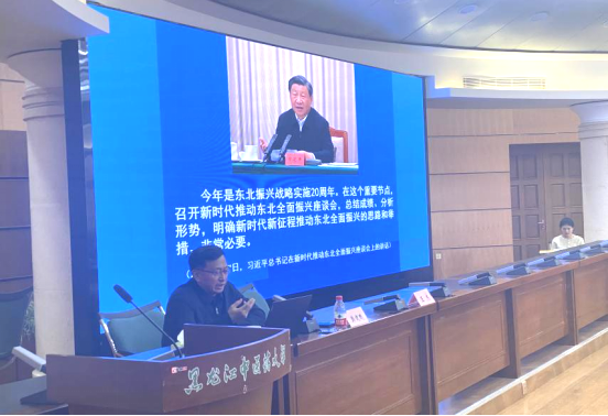 中共黑龙江省委党校韩健鹏教授作题为《深入学习贯彻习近平总书记重要讲话重要指示精神 奋力开创黑龙江高质量发展可持续振兴新局面》的专题讲座