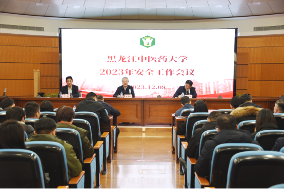 12月8日上午,学校在主楼求真讲堂召开2023年安全工作会议。校党委书记赵炜明讲话,党委副书记尹占军主持会议,副校长、党委常委王顺传达我省安全生产相关会议精神,副校长、党委常委杨炳友,驻校纪检监察组组长、党委常委栾树森,党委常委、宣传部部长李和伟出席会议。全体正处级干部,各附属医院分管安全工作副院长参加会议。