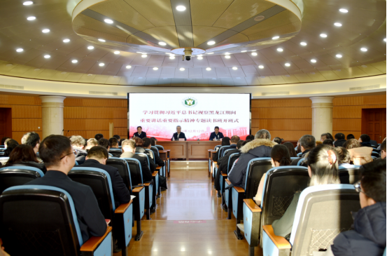 12日上午,学校在求真讲堂举行学习贯彻习近平总书记视察黑龙江期间重要讲话重要指示精神专题读书班开班式。