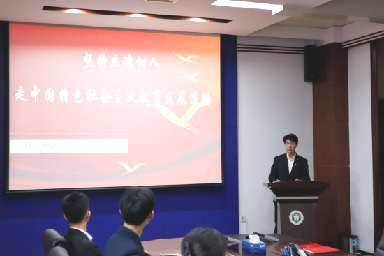 第3届兴边富民计划研究生支教团成员、研究生院2023级护理学专业秘殿超同学以《坚持立德树人 走中国特色社会主义教育发展道路》为题作示范宣讲。