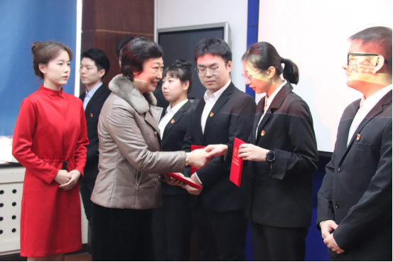 乔广霞为本年度11名宣讲团新成员颁发聘书