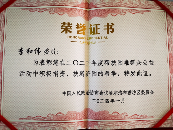 哈尔滨市香坊区政协四届三次会议于2月5日至6日召开。区政协委员、校党委常委、宣传部部长李和伟当选政协哈尔滨市香坊区第四届委员会第三次会议选举总监票人,李和伟撰写的提案《关于推进香坊区中医药康养游项目的建议》获得“2023年度优秀提案奖”。李和伟、于钦明在帮扶困难群众公益活动中获得表彰。