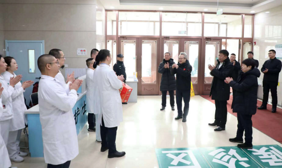 在农历甲辰年春节即将到来之际,2月9日,学校党委书记赵炜明,校长郭宏伟,副校长杨炳友、李全、张浩分别到校本部及各附属医院,走访慰问坚守在值班岗位上的教职员工,看望部分在校学生,并通过他们向全校师生致以新春佳节的美好祝福。