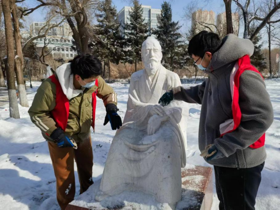 2月27日至3月4日,药学院、第一临床医学院、第二临床医学院、国际教育学院、校青年志愿者协会组织50余名志愿者在校园内、家乡所在社区清除积雪,擦拭清洗名家雕塑、石碑和座椅,清理捡拾道路垃圾,为共建和谐校园、美丽家乡建设贡献力量。