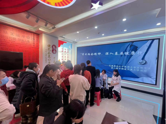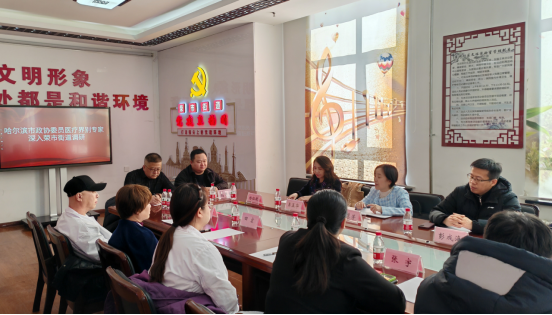 哈尔滨市政协医疗卫生界别委员丛慧芳、彭成海、吴玉华、李虹霖、杨红艳、赵玉阁、胡志国、李作成等,就基层医疗工作相关情况与社区工作人员展开座谈交流。