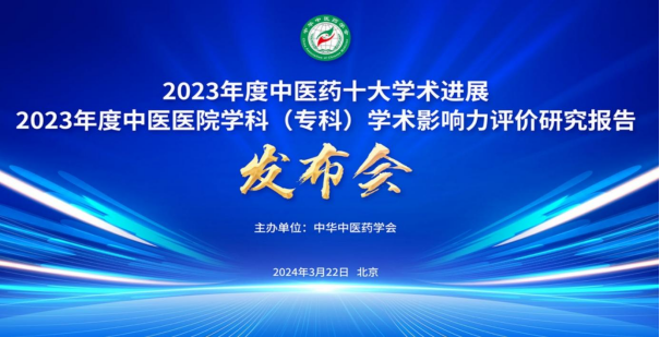 3月22日上午9时,中华中医药学会举办的2023年度中医药十大学术进展和中医医院学科(专科)学术影响力评价研究报告发布会在京召开。