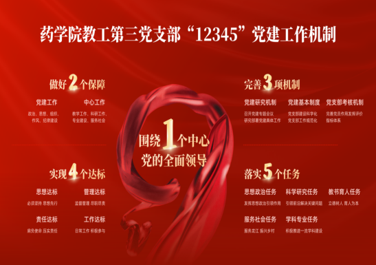 药学院教工第三党支部自2012年3月成立以来,在学校和学院党委的领导下,坚持以习近平新时代中国特色社会主义思想为指导,深入贯彻新时代党的建设总要求,探索形成了“12345”党建工作机制,持续强化支部建设、促进党建与业务深度融合、充分发挥党员先锋作用,有力推动思想政治任务、科学研究任务、教书育人任务、学科专业任务、服务社会任务等“五项任务”落实落细,取得较为丰硕的成果。支部先后获评黑龙江省公办高校党建“样板支部”,校级“先进基层党组织”、“党的建设与中心工作一体化”示范基地、“双带头人”教师党支部书记工作室;以支部党员为核心成员的教师团队获评全国黄大年式教师团队、黑龙江省高校课程思政建设教学团队;在全国第四轮学科评估中,以支部党员为带头人和骨干的中药学学科获评“A+”学科,学校成为全国获评“A+”学科的三所中医药院校之一;支部党员获评国家教学名师、国家高层次人才、国家有突出贡献中青年专家、百千万人才工程国家级人选等省级以上人才称号22人次,获得国家重点研发计划资助项目2项、国家973计划项目验收优秀结论,国家科技进步二等奖2项,近五年培养硕士研究生、博士研究生50余人;支部书记刘艳同志获得第25届“黑龙江省青年五四奖章”。