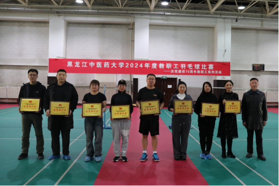 赛场上,队员们挥动球拍、挥洒汗水,各支队伍团结合作,经过激烈的角逐,第一临床医学院刘岩、李守超,药学院与中医药研究院联队郭盛磊、陈大中,第一临床医学院于春松、陈铎分别获得男子双打冠、亚、季军;体育教研部与基础医学院联队孙冬颖、文雁,第一临床医学院徐峥、祝艳菊,第三临床医学院陈丽容、全慧荣分别获得女子双打冠、亚、季军;第二临床医学院宋沐阳、崔一之,机关与药物安全性评价中心联队吴修红、刘永武,图书馆与中医药博物馆联队邢媛媛、于兴博分别获得混合双打冠亚、季军。