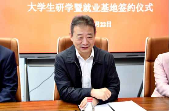 郭宏伟介绍学校的发展现状和“研学暨就业基地”的目标愿景,同时感谢张立国董事长对母校做出的贡献,希望通过基地的建设,双方可以建立产、学、研为主导的战略合作关系,实现共赢。