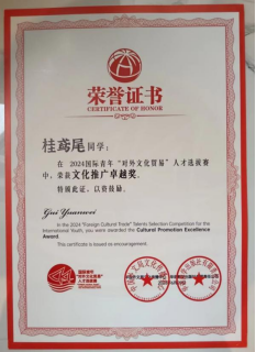 其中,德赢桂鸢尾同学与清华大学伊朗籍留学生庄致远、四川大学摩洛哥籍留学生皓月并列获得文化推广卓越奖,为最高奖项。