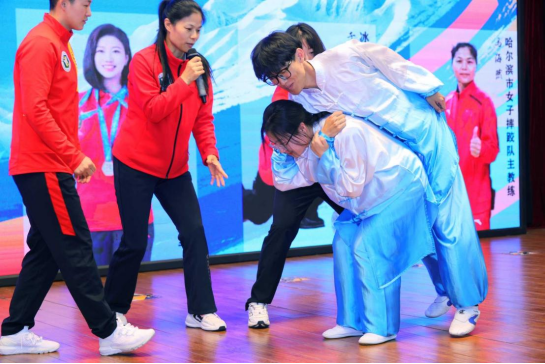 哈尔滨市摔跤队主教练马海燕宣讲